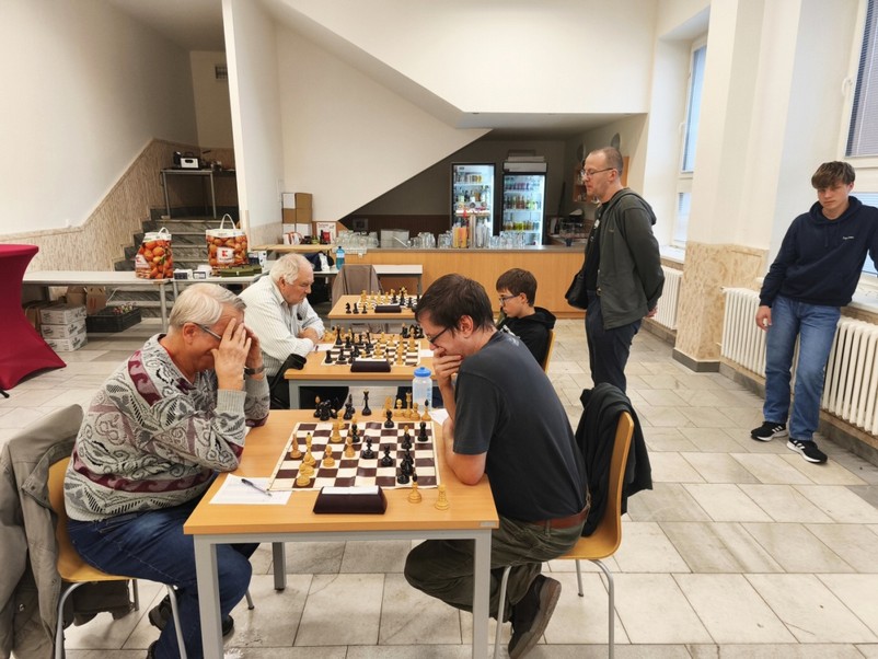 No a na konec nešťastný Bohouš Sobotka. Měl sice o pěšce méně ale v zazděném postavení to nehrálo roli, jasná plichta. Ovšem to by ho nesměla posednout šachová slepota, sebral střelcem pěšce, soupeř ho druhým pěšcem dobral a předpokládané vidle se prostě nekonaly. Tak bylo po partii ale na celkové výhře to nic neměnilo.