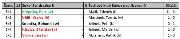 TJ Sokol Sendražice B – Šachový klub Bakov D 3,5:1,5