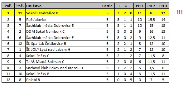 Jako prvý vyhrál Honza Vidrna, získal pěšáka, pak druhého a to už se soupeřova pozice zhroutila.