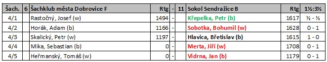 Šachklub města Dobrovice F - TJ Sokol Sendražice B 1,5:3,5