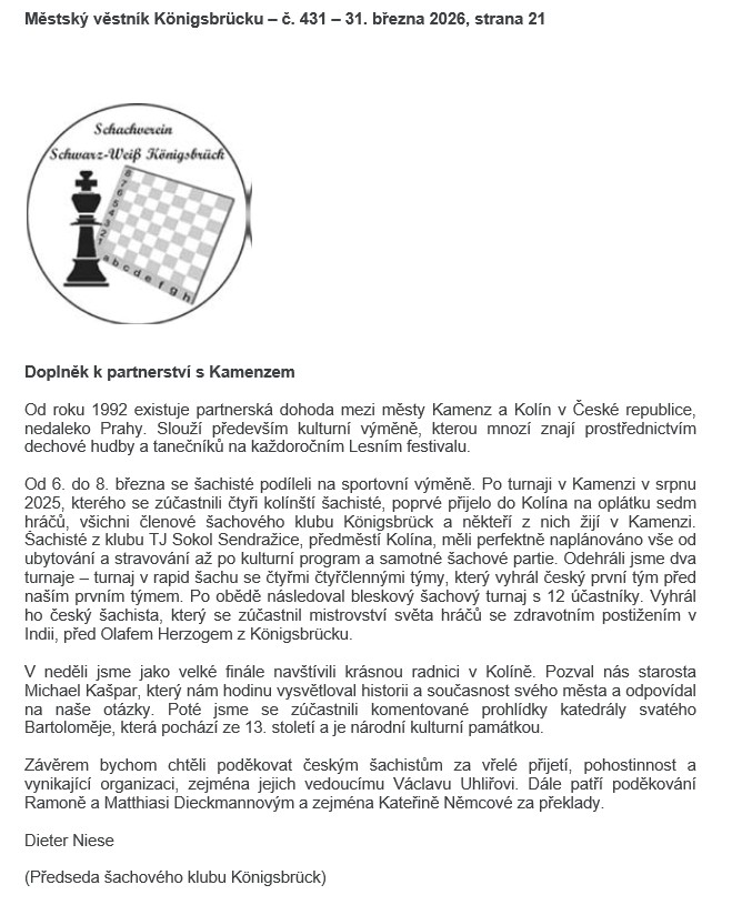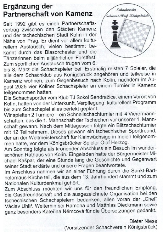 Kamenz 2026 - Šachový oddíl TJ Sokol Sendražice