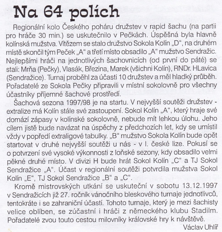 Kolínský Zpravodaj 1997/11 - Šachový oddíl TJ Sokol Sendražice