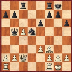 [Vyhrávalo 19...Nxh8 20.Nxe6 Bxe6 21.fxg7 Bxg7 22.Qxg7 Ng6] 20.Rh5 [20.Rh7! Nf4 21.Bc4 Ng2 22.Bf2 Nf4 23.Qb3 Ng6 24.a3 Ne5 25.Be2 s lepší hrou.] 20...Nf4 21.Bxf4 Qxf4 22.Ra5 Qh2 23.Qe1 d5 Po sérii hrubých chyb na obou stranách vznikla vyrovnaná koncovka. 24.Rxa6 [24.a3 Místo pro ústup krále, pěšec a6 neuteče.] 24...Rxa6 25.Bxa6 dxe4 26.a3?? Poslední a definitivně prohrávající chybu udělal bílý. [26.fxe4 g5 s lepší koncovkou i bez pěšce.(26...Qd6 27.Nb5 Qb6 28.a4=) ] 26...Qd6 27.Nb5 Qb6 28.a4 exf3 29.Qf1 f2 30.Nc3 Qe3 31.Be2 Bc5 32.a5 Bc6 [32...g5] 33.Nd1 Qg3 34.Bb5 Kd7 [34...Bxb5 35.Qxb5+ Kd8 36.a6 Ba7] 35.Bxc6+ Kxc6 36.Qa6+ Kc7 37.Qc4 Kd6?? I zde bylo třeba se mít na pozoru. 38.Qa6+?? [38.b4 Kd7 (38...Ba7 39.Qa6+) 39.bxc5 Qg1 40.Qb5+ Kd8 41.Qd3+ Ke7 42.Qd6+ s remízou.] 38...Ke7 39.Qb7+ Kf6 40.Nxf2 Qxf2 41.a6 Qe1+ 42.Ka2 Qa5+ 43.Kb1 Qb6 44.Qf3+ Kg6 45.Qg4+ Kh7 46.Qh4+ Kg8 47.Qa4 g5 48.c3 Qc7 49.Qc4 Qd6 50.b4 Ba7 51.b5 Qc5 52.Qd3 Qd5 53.Qe2 f5 54.Kb2 f4 55.c4 Qd4+ 56.Kc2 Qf2 0–1