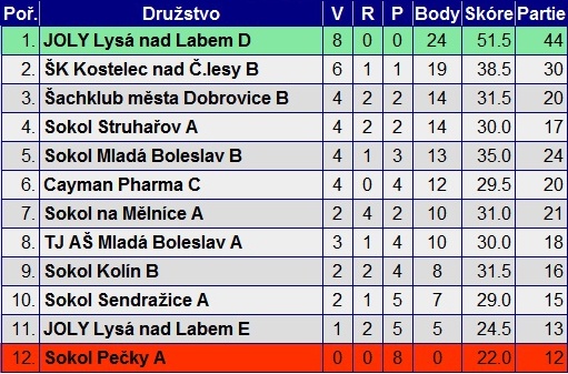 Joly Lysá nad Labem E - Sokol Sendražice A 2,5:5,5