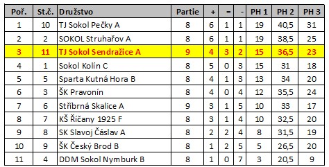 TJ Sokol Pečky A - TJ Sokol Sendražice A 3,5:4,5