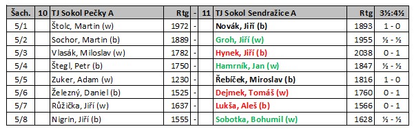 Z mého pohledu zasloužené těsné vítězství. Pravděpodobně největší zásluhu na vítězství má Jirka Hynek, který nastoupil poprvé v sezoně a ziskem celého bodu přispěl k naší výhře. Splnil tak předpověď kapitána, že na třetí desce udělá v letošní sezoně 100%.
