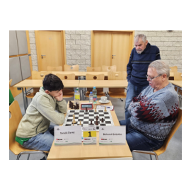 Břetislav Hlavica statečně bojoval proti mladému soupeři. Hrál jsem raději opatrně a podařilo se mi získat pěšce a když ho protihráč chtěl získat zpět, ztratil jak jsem předpokládal dalšího. S dvěma volnými pěšci na dámském křídle jsem to hrál na dřevo a když jsem si postavil dvě dámy, dal jsem i mat.