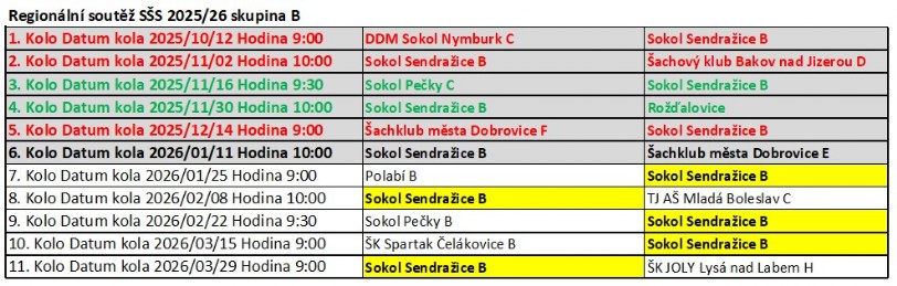 Rozpis utkání béčka - Šachový oddíl TJ Sokol Sendražice