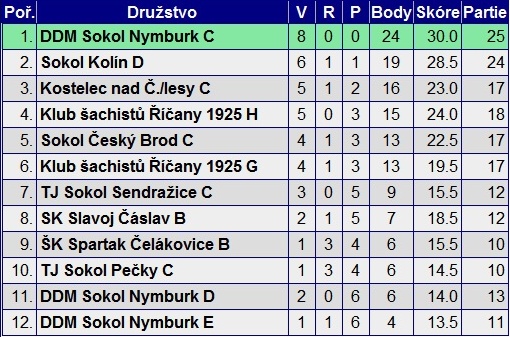 TJ Sokol Sendražice C - SK Slavoj Čáslav B 0,5:4,5