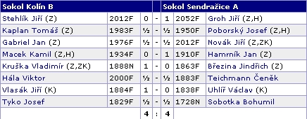 Sokol Kolín B - Sendražice 4:4