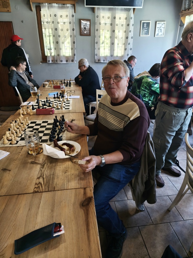 Jindra Březina hrál podle svého zvyku pozorně a vystavěli vyrovnanou pozici, bohužel v závěru Jindra přehlédl po výměnách pěšcové vidle na krále a věž a byl konec.