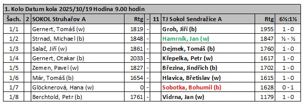 Sokol Struhařov A – TJ Sokol Sendražice A 6,5:1,5