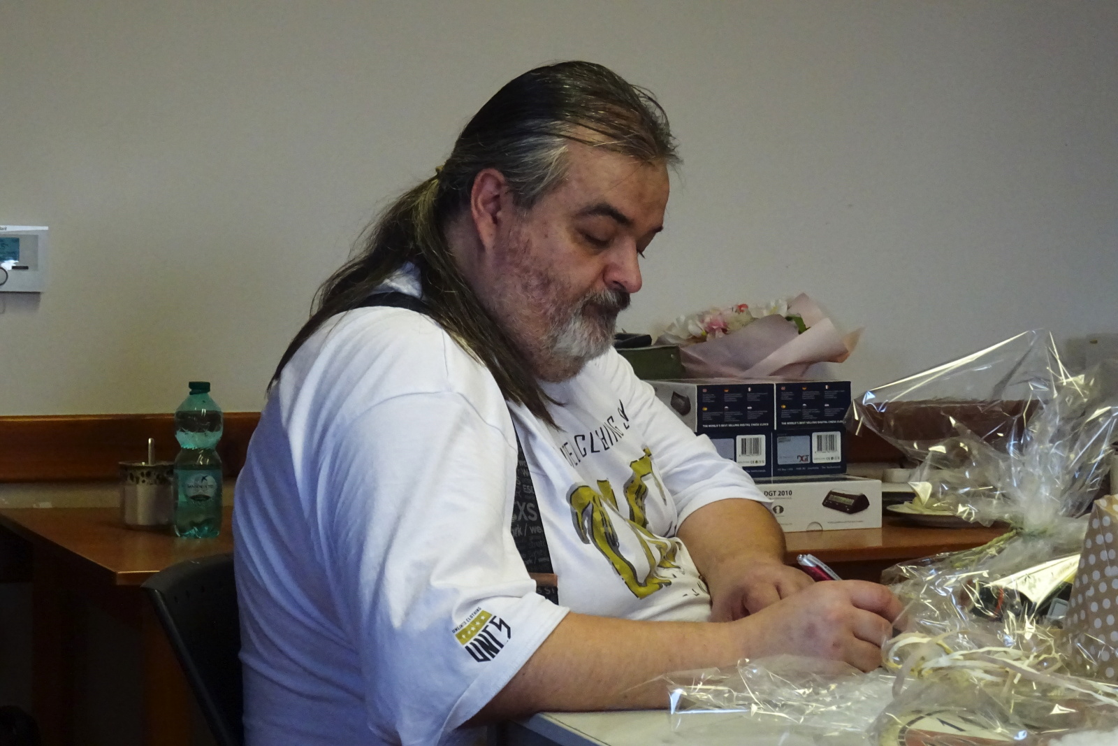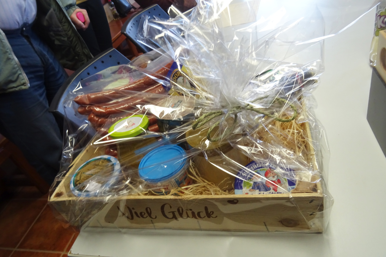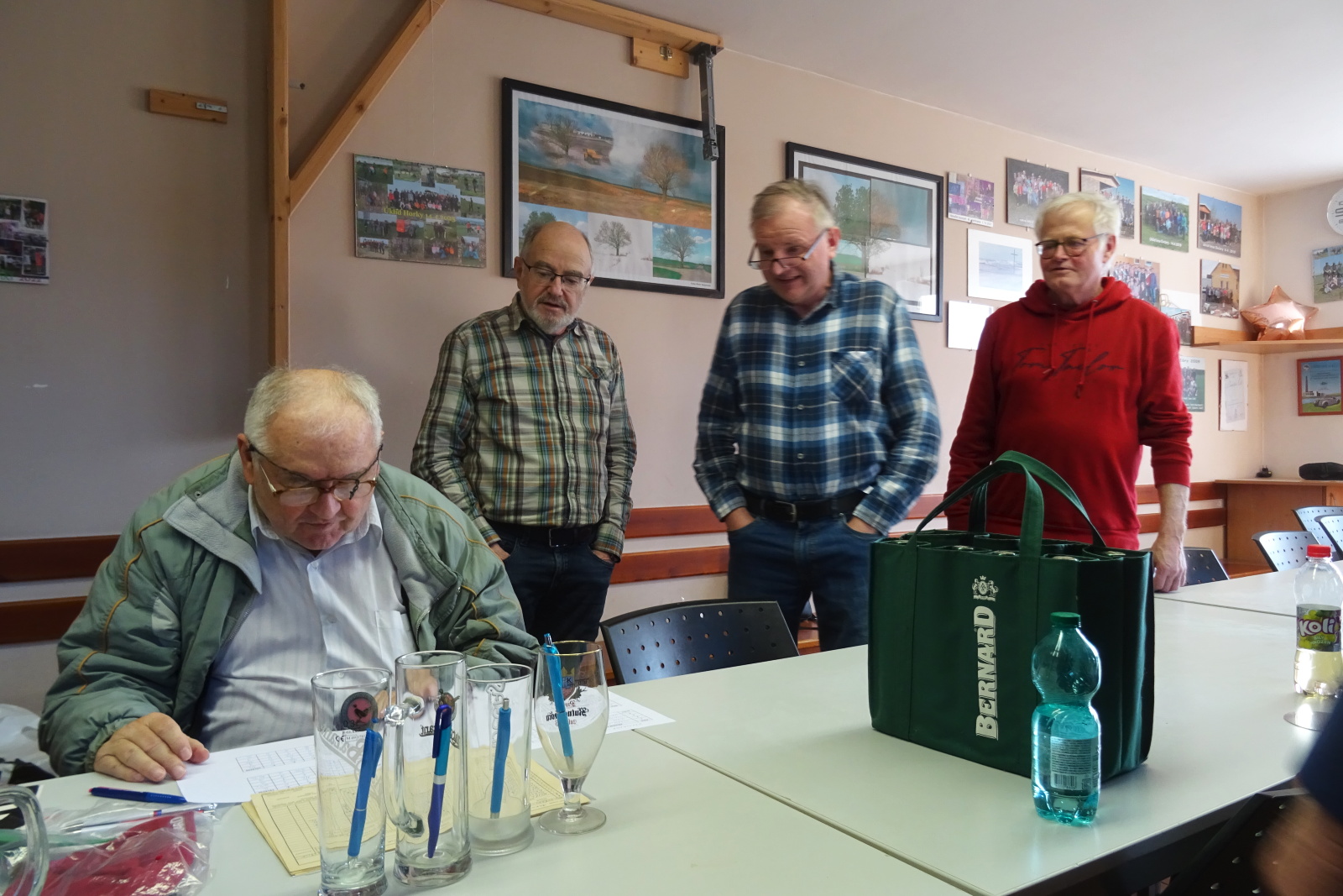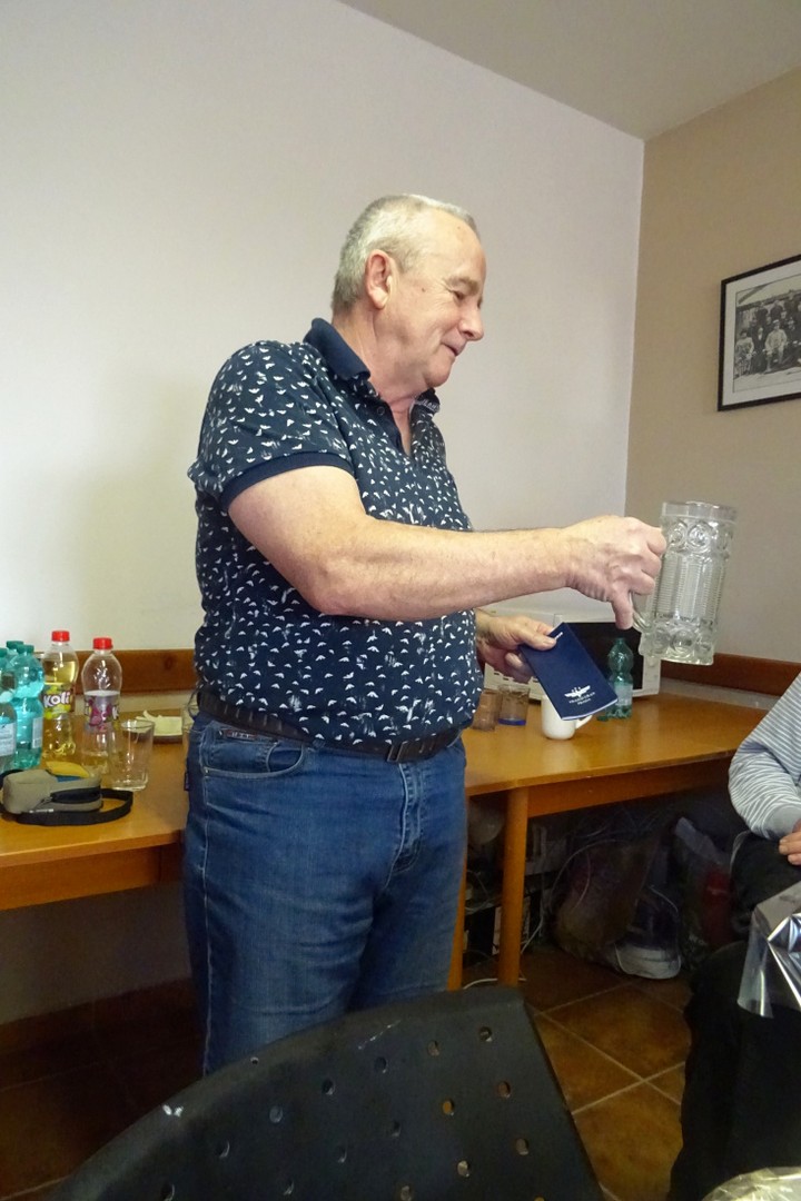 Po vyhlášení výsledků turnajů proběhla slavnostní řeč německých přátel. Poděkování za přátelské přijetí a zajištění hezkého programu bylo zakončeno darem pro náš šachový klub. Darovací bedýnka obsahovala výrobky z oblasti Kamenze z převážné většiny určených ke konzumaci. Sežereme to v Ovčárech po posledním utkání áčka.
