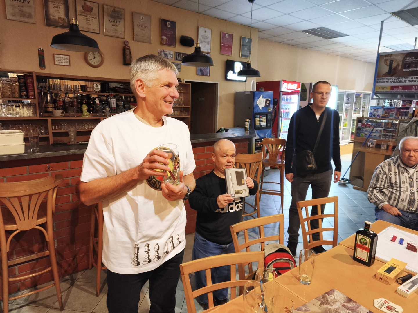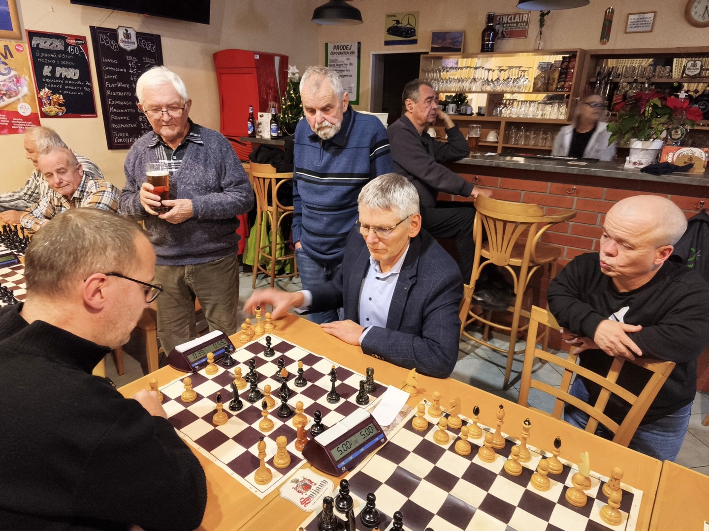 Jako každý rok i letos se na pumpě konal vánoční turnaj. Účast byla hojná, 13 aktivních hráčů, dále Rigos jako pozorovatel a Karel Mašín, který přišel pozdě. A i diváci z řad místních štamgastů. Občerstvení servírovala paní Uhlířová společně s Vladimíre. Tvořily ho jednohubky s domácím Václavovým česnekem a tradiční vynikající cukroví od paní Březinové.