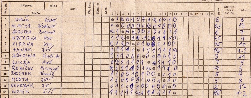 Bohouš byl ošizen, podle součtu měl mít o půl bodu více a celkem 6,5 bodů a tedy 6. místo!