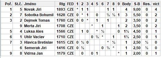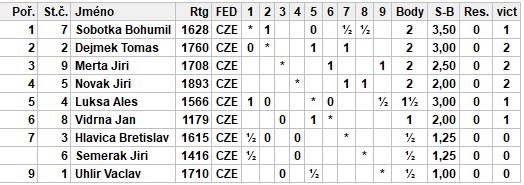 Začal přebor oddílu, hraje se 2x90 minut bez přídavku. Celkem je přihlášeno 9 šachistů a z toho se dostavilo 6, takže akorát na 3 partie a nikdo neseděl zbůhdarma. Některé výsledky byly docela překvapivé - v podstatě všechny