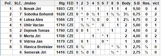 A už je tady září a na pumpě se nezahálelo. Bleskového turnaje se účastnili Václav, Bohouš, Břeťa, Aleš, Honza V. a překvapivě se dostavil i skoro uzdravený a odoperovaný Jindra. Vyhrál s impozantním ziskem 4,5 z 5 Václav, blahopřejeme!